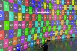 Another area offers a dreamlike cavern featuring a 300 m² video mapping installation, based on 4 x Barco 4K video projectors, powered by Modulo Kinetic for a resolution of 33 million pixels.