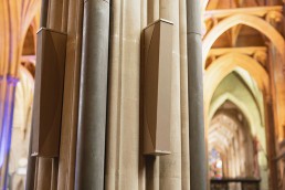 “The new speakers have got a really good, high-quality sound. They’re clear, but they’re also very unobtrusive. The design, the shape and the shade blend into the cathedral architecture really well.”