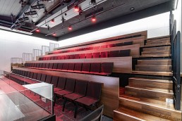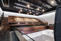 The team achieved the seemingly impossible – zero sound leakage from a 300-capacity venue situated just 20 metres from a hospital. Through smart engineering, including a room-in-room construction, carefully angled balcony design, and advanced absorptive treatments, the venue now delivers pristine acoustics without a trace of external disturbance. These solutions aren’t just technically sound – they’re beautifully integrated into the venue’s visual language, supporting lighting and projection design without compromise.