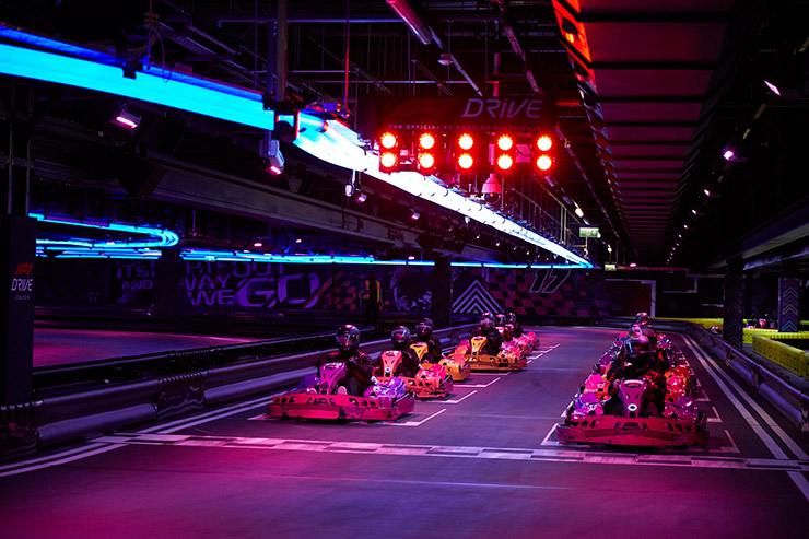 Drivers then wait in Pit Lanes where ultra-high-definition monitors display final instructions and ongoing race data. Drivers have a choice of track layouts – junior, adult and a combined larger sprint track which can be used as a training venue for future professional drivers as part of the F1® Karting Academy. The tracks incorporate all the essential elements and excitement of a major outdoor Formula 1 event, such as starting lights, sound cues, real-time race data, instant lap times and video playback.