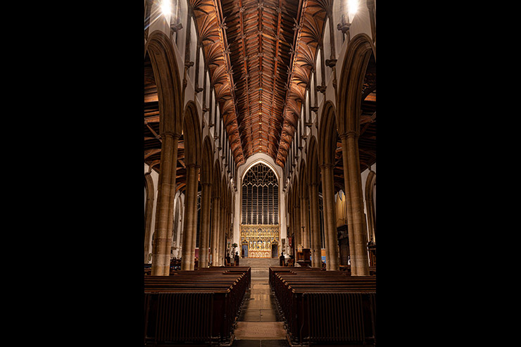 Positioning most of the lighting strategically inside the clerestory window reveals gave the correct angles to both illuminate the body of the church and up-light the spectacular hammer beam roof and ceiling bosses. It was imperative to correctly illuminate the choir and sanctuary for both worship and for the many concerts that take place at the Church of St Peter Mancroft.
