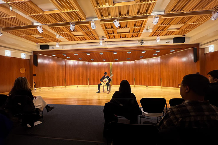 This resulted in an audio system with great clarity and even coverage throughout the space. This system sounds intimate at lower volumes, for example, to support a performance, yet has the capacity to get louder maintaining its detail and depth for a film scoring class.