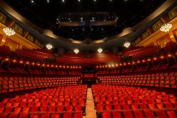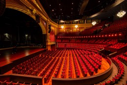 The new lighting also had to match the dimming curve of 8 magnificent chandeliers – also recently refurbished with 72 LED light sources each – which are a vital part of the venue’s history, heritage, and visual elegance, together with the plush red seating and velvet décor and elaborate roof frescos.