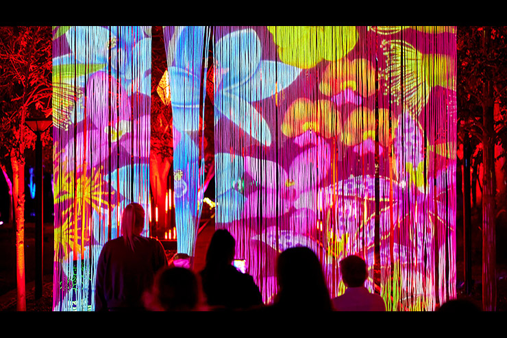 Projection mapping and illuminated installations are used throughout Bloom to create a narrative-led environment inspired by nature.
