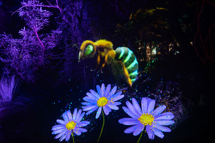 Bloom Joondalup – Luna Light Journey was commissioned by the City of Joondalup to transform Central Park into an immersive night-time attraction that activates the city centre and draws visitors from across Perth. Running from 26 September to 2 November 2025, the experience followed a blue-banded bee through glowing botanical landscapes.
