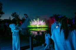 Interactive installations encourage guests to engage directly with the experience, allowing certain visual elements to respond to movement and presence. Together, these elements create a cinematic walk-through experience where digital storytelling merges with the natural environment.