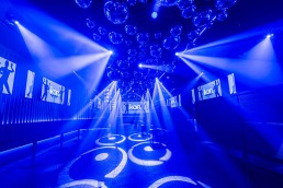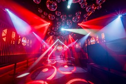 The intelligent lighting fixtures were coordinated around a ceiling installation of more than 300 mirror balls in different sizes. This layout was carefully planned to allow the moving lights to operate freely while reflecting light across the space. All lighting fixtures are controlled through an Obsidian Controls Onyx system, allowing the venue to change lighting scenes instantly depending on the atmosphere desired.