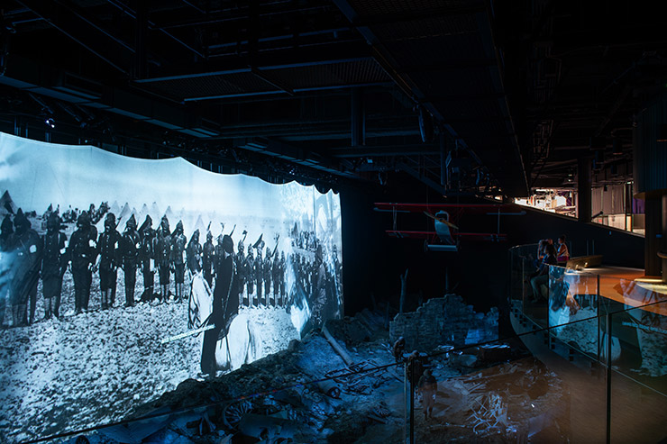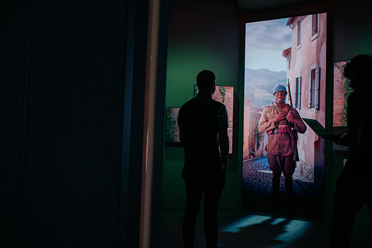 At the center of the project is the Encounters experience, an interactive installation that introduces visitors to 16 personal wartime stories through a sequence of responsive audiovisual moments. Drawn from letters, diaries and photographs, these stories are brought to life by actors from (Company) who embody the voices of combat soldiers, women munitions workers, colonial troops, a child, a dissenter and others — perspectives that together paint a broad and deeply human picture of the war’s lasting impact on modern society.