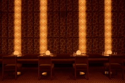 “Juan only does super exclusive places,” Schlossberg explains. “He told me about this little jewel box he was creating in New York. He wanted the most discreet high-performing system that could be colour-matched, to double as triple-A background as well as triple-A foreground.”