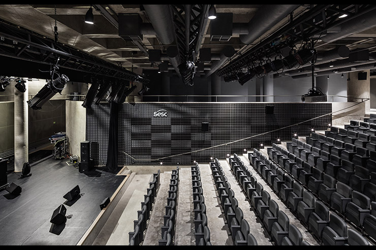 Rather than focusing on a single flagship venue, the Sesc São Paulo programme operates at an entirely different scale, delivering consistent audio infrastructure across a vast network of cultural centres.